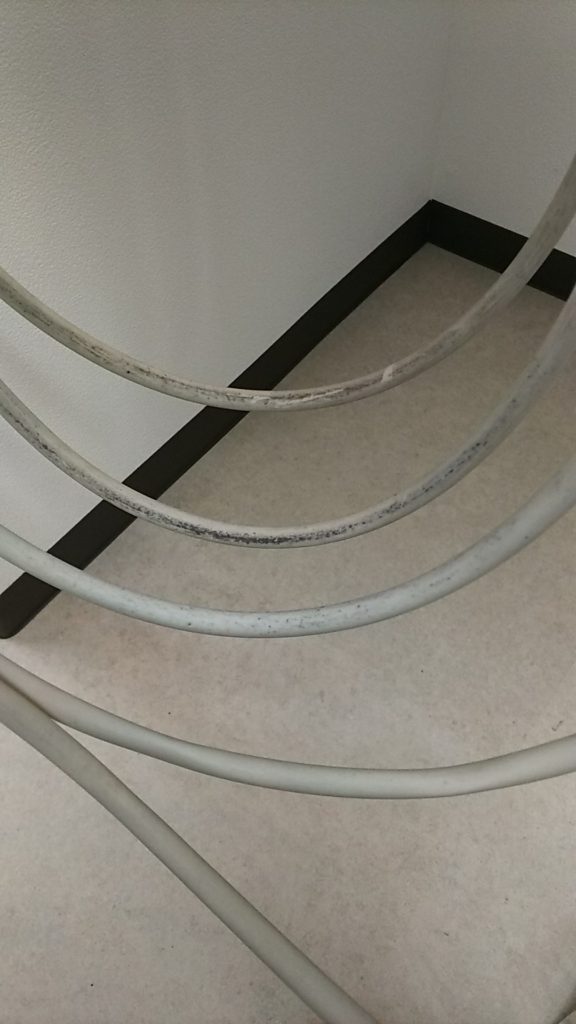 床についてしまったり、ホルダー部にあるコロやその周辺の埃、汚れにより徐々に徐々にインスツルメントホースは汚れていきます。そういった汚れってなかなか落ちないんですよね。