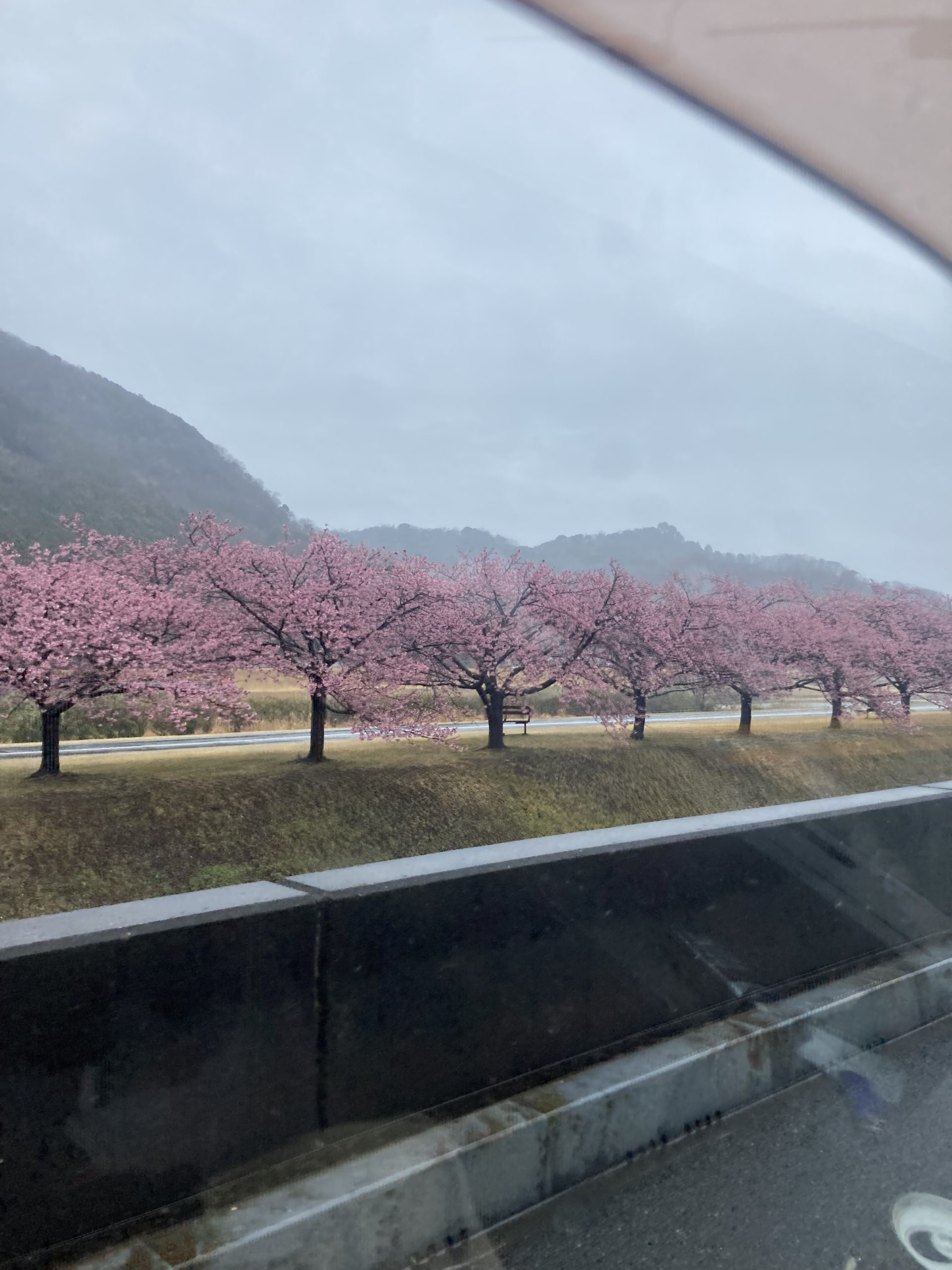 河津桜ですかね?ちょっとよく分からないんですがとにかく土手沿いに綺麗に並んでました。天気のいい日に見たいです。